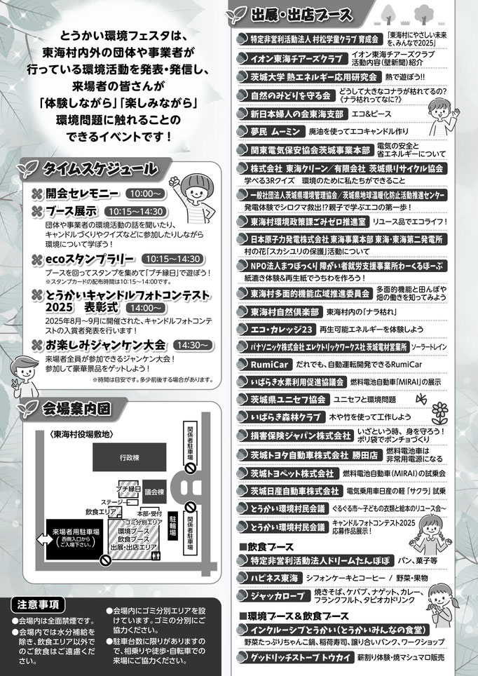 | 令和7年11月8日 | 土 | 10:00~ | とうかい環境フェスタ | 東海村役場 |